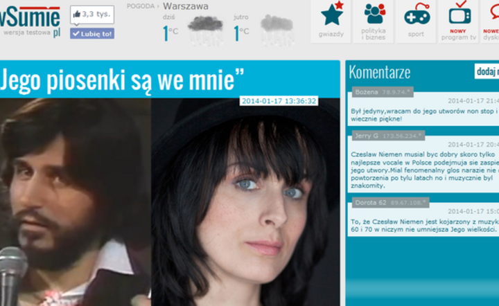 Cały wywiad "Jego piosenki są we mnie" autorstwa Agnieszki Ponikiewskiej w portalu "wSumie.pl"